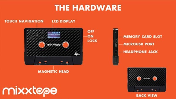 Tal y como podéis comprobar en el vídeo que os mostramos al final de este artículo, MIXXTAPE es un reproductor totalmente funcional con forma de cassette. Si nos centramos en algunas de las principales mejoras por las que destaca, el dispositivo incorpora una pantalla LCD, un panel táctil para desplazarnos por la interfaz, una ranura para tarjetas de memoria, un puerto micro USB y un conector jack. Llegados a este punto es interesante mencionar los formatos soportados. En concreto, el dispositivo será compatible con archivos más populares: MP3, WAV, WMA y AAC.